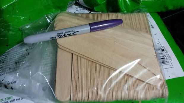10. la ilustración 10 muestra, palos de madera y un rotulador para etiquetar mi planificadores.