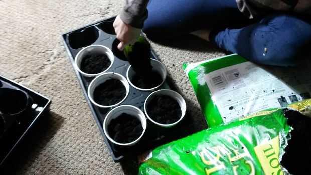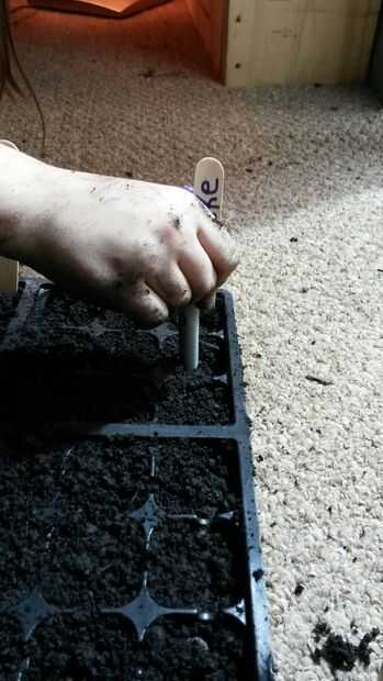 2. utilizo mi dedo o un rotulador para meter un agujero en la tierra.