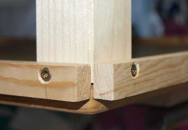 Últimas cosas que hacer es atornillar las madera rayas hasta el final de la parte inferior de las piernas para que la construcción no se resbale de la mesa donde se pone en.