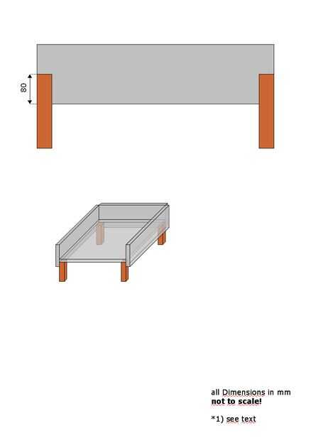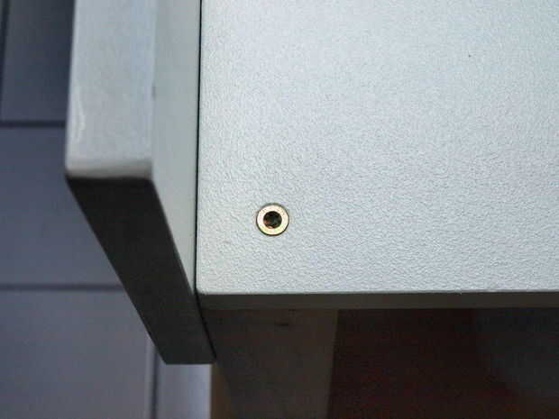 De los tornillos que sujetan los paneles laterales y los pies no es necesario taladrar agujeros en los pies. Sin embargo un agujero de 2 mm ayudará a lo que es más fácil poner los tornillos en el.