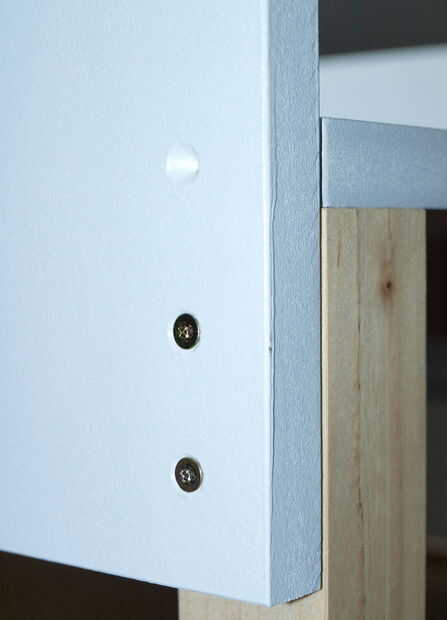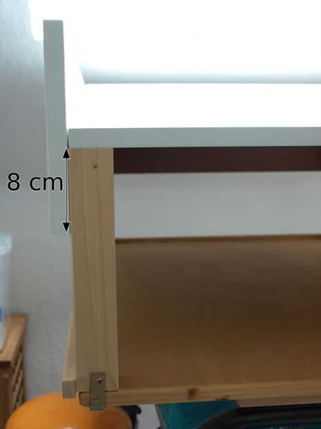 Marque primero los pies 8 cm de un extremo. Esta es la longitud que se atornillarán a los paneles laterales.