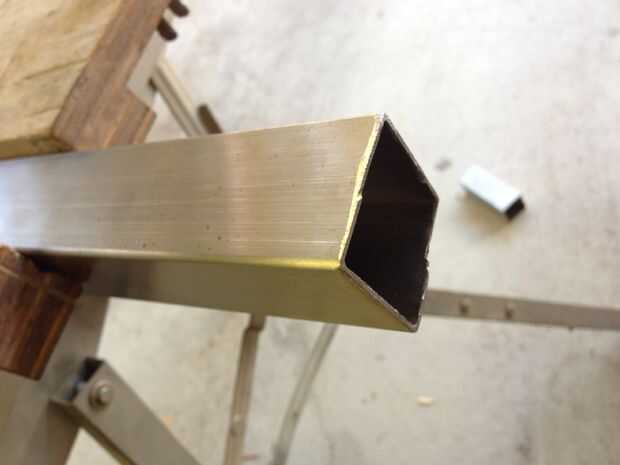Una vez que han medido la distancia en las piernas de banco de Ikea que usted necesita para cortar, agarrar ese transportador cuadrado otra vez y marcar una buena línea recta alrededor de la sección entera que vas a cortar. Utilice su amoladora angular para cortar cada pierna a la altura correcta que usted necesita que sean. Si usted está en Australia, asegúrese de que no es un día de prohibición de fuego total, como chispas de esmerilado se han sabido para causar un incendio.