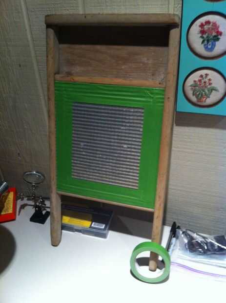 Bastante autoexplicativo. Solo graba los bordes de la parte metálica de la tabla de lavar con cinta de algún pintor.