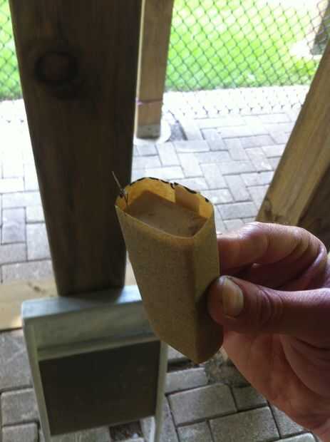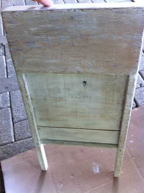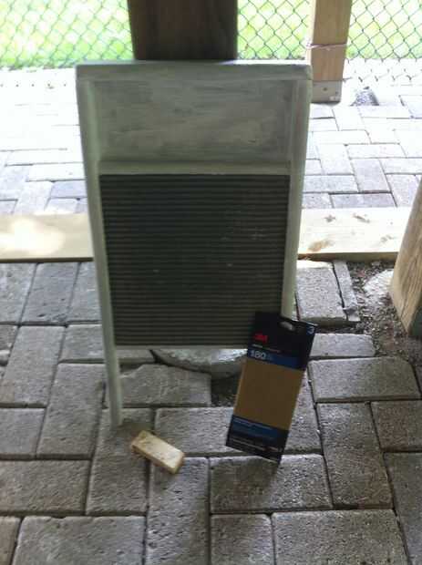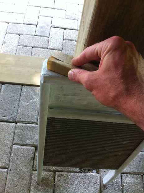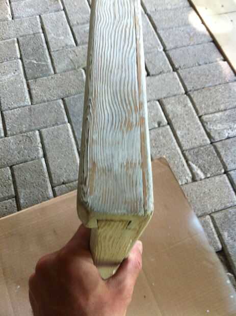 Es muy fácil. Sólo consigue un trozo de papel de lija (elegí grano 180) y envuélvalo alrededor de un pedazo plano de madera o de bloque de lijado. Suavemente la arena por todas partes que usted pintó hasta que la pintura comienza a desaparecer de las zonas altas del grano de madera. No lije demasiado o tendrás toda la pintura!