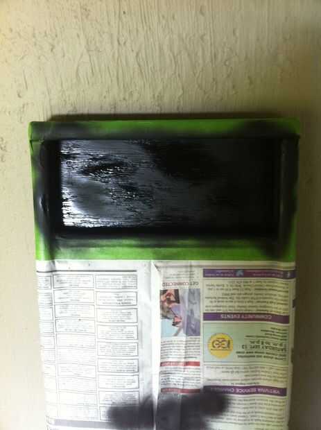 Ahora simplemente rocíe una capa de pintura de pizarra en el área sobre la sección de metal. Sólo asegúrate de que cubrir cada parte de la zona con una buena capa de la pintura de pizarra.