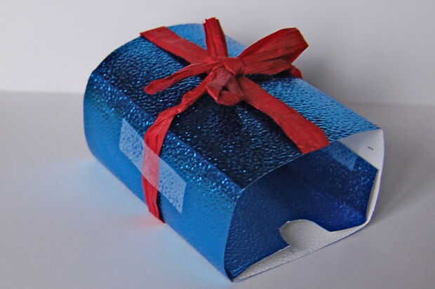 Envuelva un segundo pedazo de cinta alrededor de su "regalo" (usted puede cinta adhesiva en la parte inferior y un lado) y atar un arco en la parte superior.