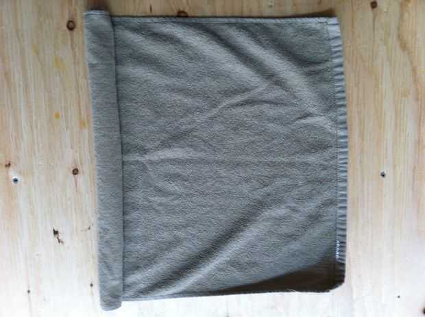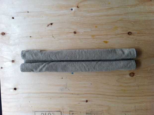1) empezando por el lado más corto de la toalla de té rollo de un lado a la mitad