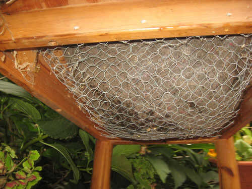 Entonces un sawd la parte inferior del asiento y poner una cocosfiber en él. Luego he puesto chickenwire en la parte inferior del asiento.