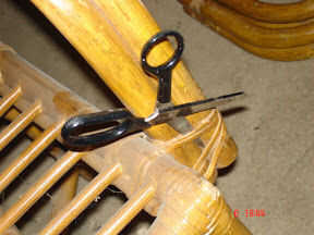 Para quitar los brazos de esta particular silla necesito cortar las cintas que sostiene a la estructura de la silla. (como se muestra en el cuadro #1) Los brazos se retiran ahora de la estructura. (como se muestra en la figura #2)