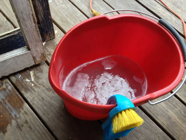 -Limpie la ventana de cualquier suciedad, utilice un cepillo y una manguera para quitar suciedad vieja, telarañas, etc.. También, es bueno utilizar la manguera para quitar la pintura vieja. (Pintura puede contener plomo, que puede ser peligrosas tenga cuidado y use protección).