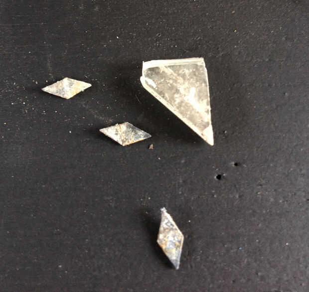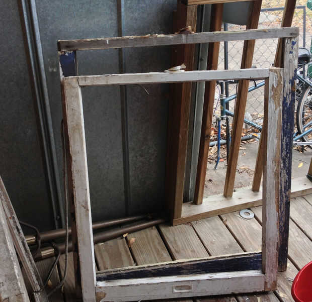 -Quitar el metal que puede ser del marco, ventanas viejas usadas piezas metálicas pequeñas (en forma de diamante) para mantener el cristal en su lugar. Estos necesitan ser removidas para la seguridad. Usé un cuchillo pero también puede ser buena un par de pinzas. (Otra vez, por favor use precaución y sentido común.)