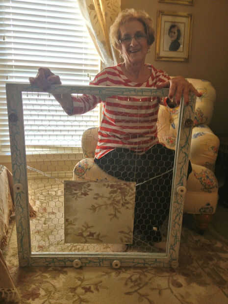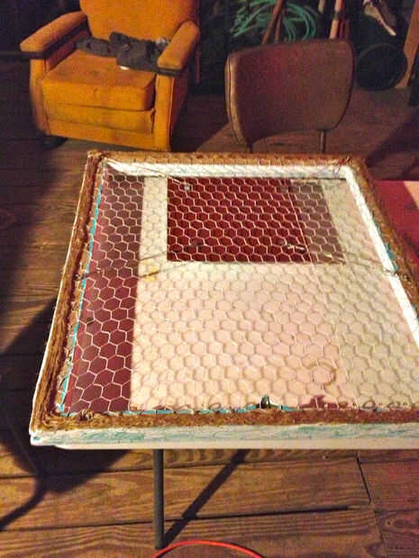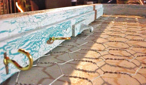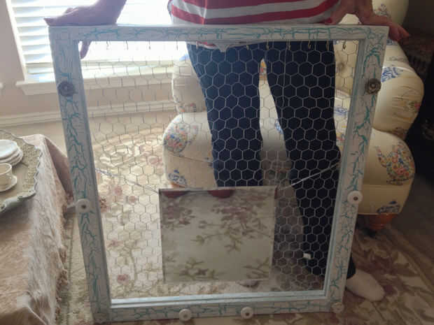 3. Cuelgue el espejo dentro del cable. Esto es realmente suya. Para el primero de ellos que hice usé una sola pieza de alambre. Que conste que es sin duda la manera más difícil. La mejor manera es cortar 4 piezas y asegure cada lado mientras avanzas. Ver fotos.