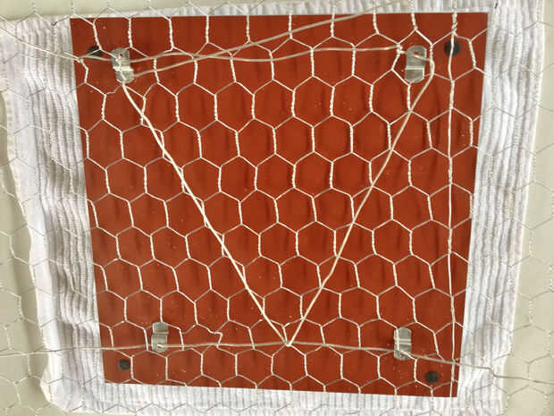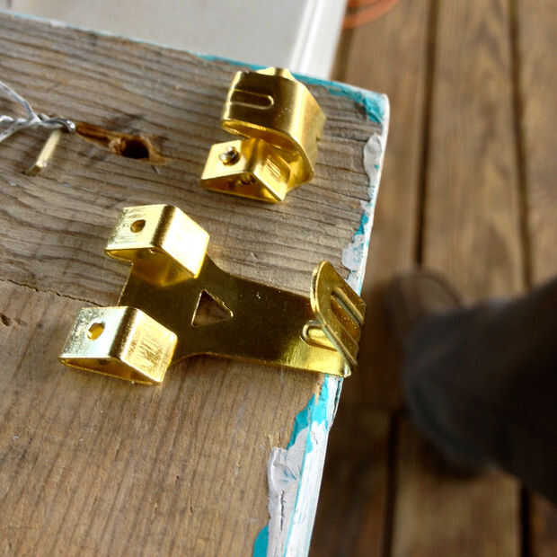 2. agregar el hardware para el marco, utilicé lo que tenía disponible, que pasó a ser cuadro ikea colgante hardware que moldeado en algo pude poner el alambre con el que pudiera sostener el espejo.