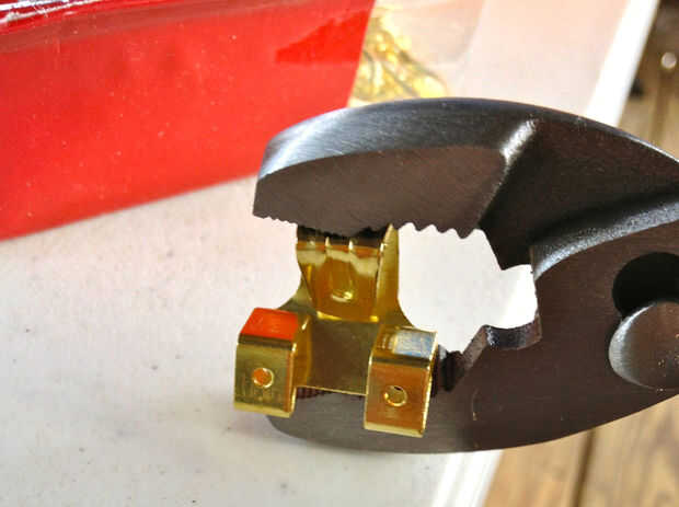 Añadir los pomos (tiradores) y el perno para fijar en los orificios que ha perforado anteriormente.