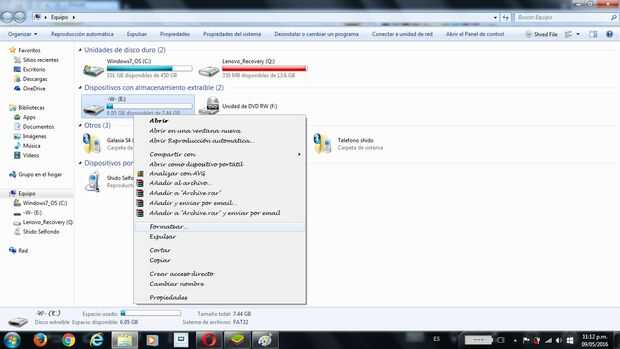 Paso 2: Y clickeamos en Formatear Seleccionamos nuestra USB