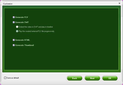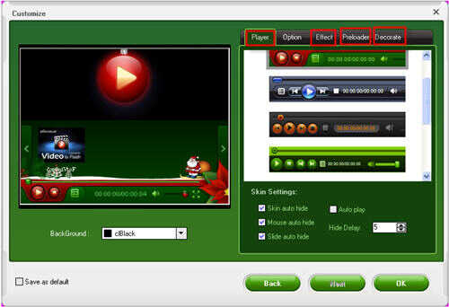 Botón "Siguiente" y en el paso 3 de personalizar ventana, vídeo a flash convertidor proporciona con Personaliza reproductor flash con revestimiento barra de control, preloader y efecto especial.