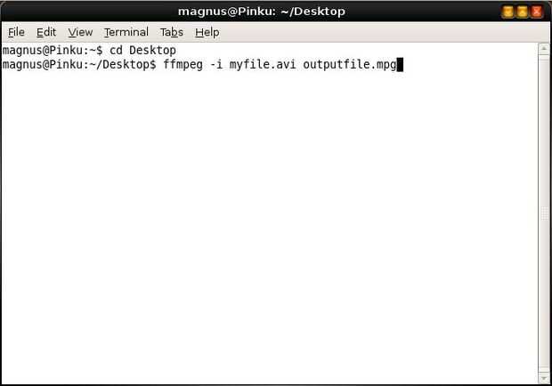 ejemplo: ffmpeg -i input.avi output.mpg