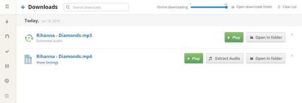 Si previamente no has colocado la marca de verificación, puede iniciar manualmente la extracción del archivo MP3 haciendo clic en el botón "Extraer Audio" cerca el video descargado.