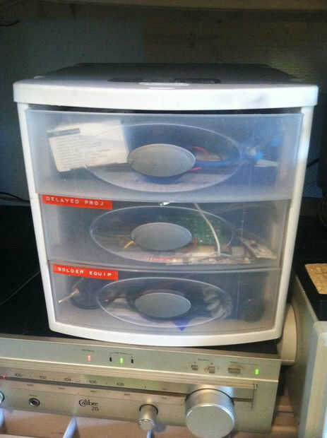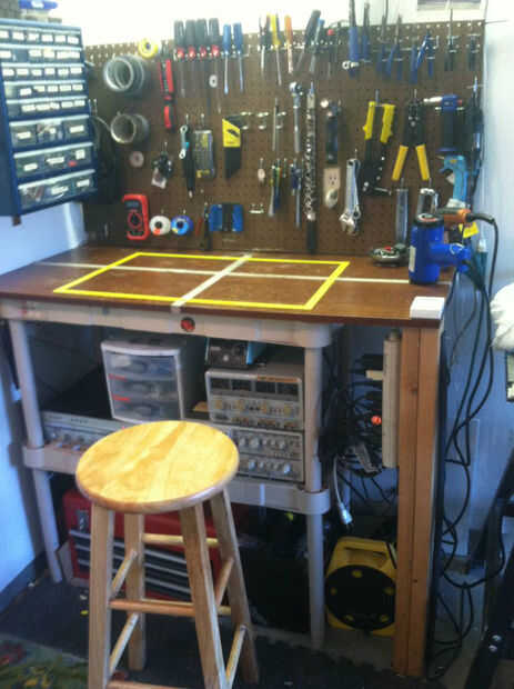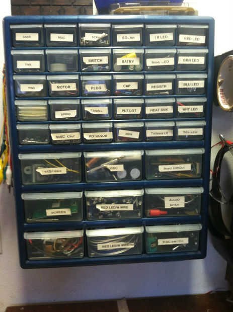 El taller: Es donde se construirán sus proyectos. Sí, en su propio escritorio de trabajo! Que mina construido de madera Ikea daba tirar, lanzar 2 2 x 4 hice la pata de la esquina * se muestra en el cuadro *, el escritorio está fijado a la pared por 2 2 x 4 perforados en los montantes de la pared, luego descansa el borde en la parte superior de 2 x 4. Porque la mesa está en una esquina, no necesito más de 1 pata, esta técnica es el tipo más fuerte de escritorio, así que si usted está trabajando en cosas pesadas, te recomiendo un escritorio de esquina. Perforado es una manera increíble para un acceso rápido y fácil a sus herramientas. Sin embargo tengo tantas herramientas, tengo algunas en mi caja de herramientas, éstos tienden a ser más herramientas afiladas y peligrosas. Almacenamiento de información es una necesidad y necesidad absoluta. No podrás tener cualquier prueba equipo o herramienta de almacenamiento de información sin una unidad de estantería. ocurrió entonces tenía una estantería plástico que usé en mi escritorio.