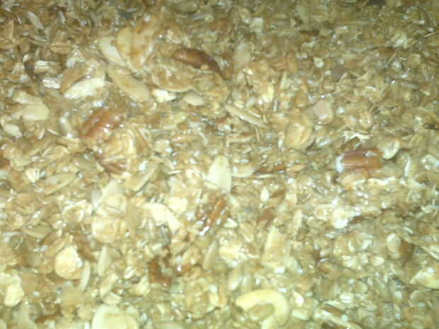 Mi granola fue basado libremente en una receta de la revista de la puesta del sol, pero he cambiado los ingredientes y no medir nada. Aún así salió delicioso.