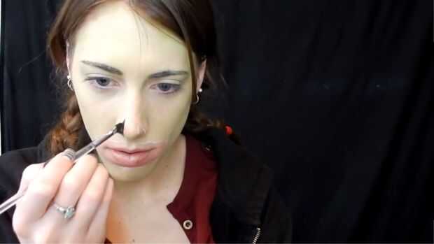 Rellene su nariz con la pintura negra del cuerpo y luego trazar los huesos de la mejilla con la pintura de cuerpo.