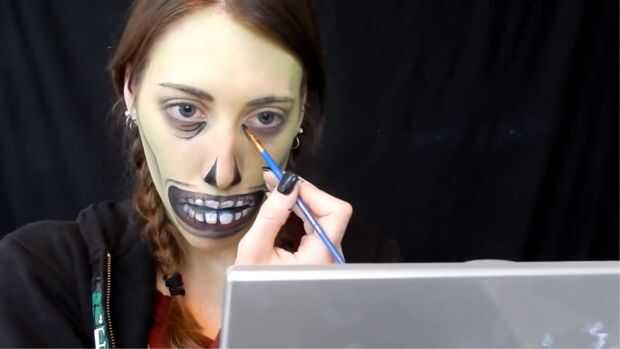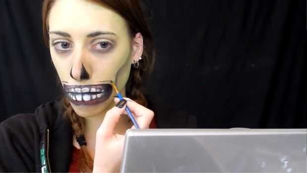 Uso de pintura corporal negra para agregar las arrugas alrededor de la boca y los ojos.
