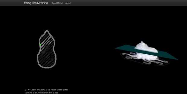 Comencé a preguntarme si realmente entendí cómo 3D impresoras trabajadas y cómo código de G fue utilizado en impresoras 3D. Jugaba con varios generadores de código de G como Skeinforge y Slic3r (Slic3r es mucho más fácil de usar) pero que no tengo un conocimiento profundo de lo que parecía G-Code o cómo la máquina se movió desde un punto a otro. Buscado en internet para visualizaciones G-Code y decidí construir mi propio encima de algo muy cerca de mi idea en Github. He modificado el código para mostrar capa por capa, lo que G-parecido. Se puede jugar con lo que hace y ver si realmente entienden G-Code en mi sitio web en http://artfordorks.com/btm/