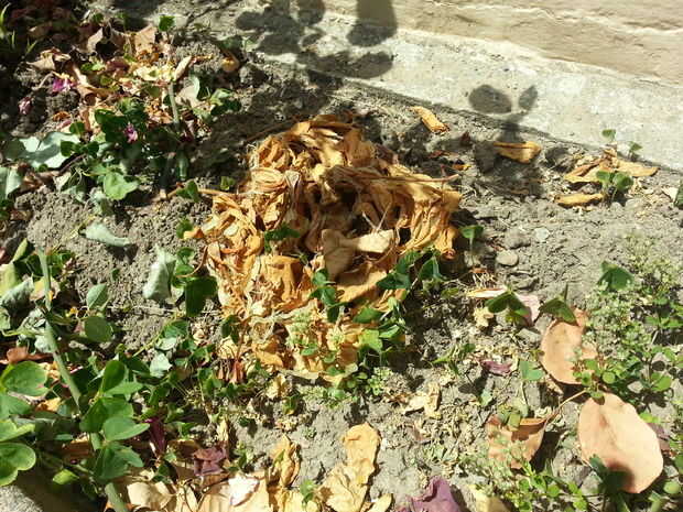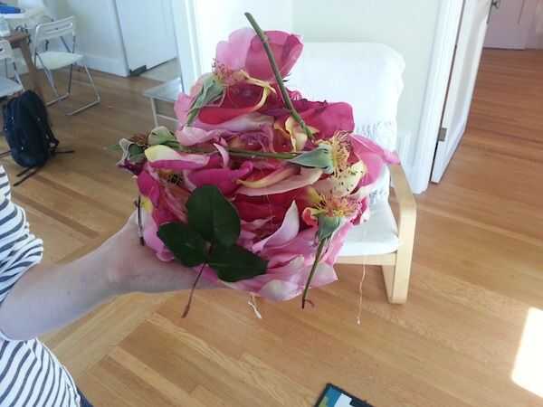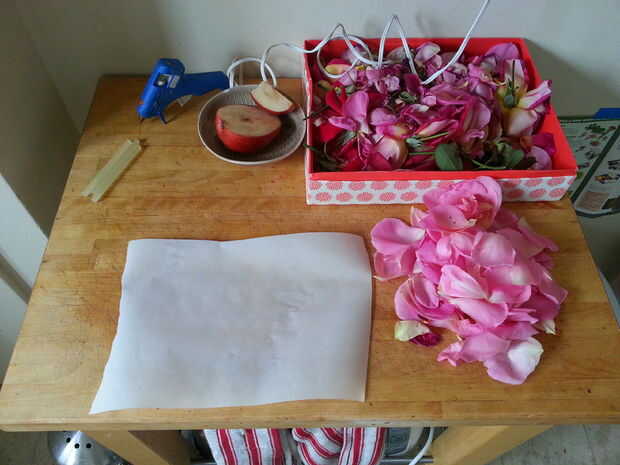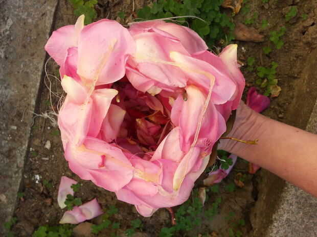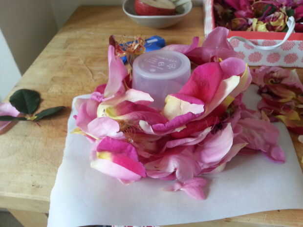 Antes de construir cualquier cosa, traté de falsificarlo y ver lo que sucedería. Así, yo podan los Rosales y había guardado todos los tallos y pétalos. Agarré mi pistola de pegamento confiable y unos snacks para masticar en mientras trabajaba. Creo que comenzó dibujando caminos de G-Code con la pistola encoladora y luego poner pétalos de rosa a lo largo de los caminos. En algún momento, que necesitaba ayuda así que usé un recipiente de tupperware. Yo seguí construyendo y construyendo hasta que tuviera una gota de pétalos de rosa. Usé los tallos para crear detalles de la casa-como en el modelo. Me tomó 20 minutos para construir, era sorprendente robusto y olía gran. Particularmente me encantó el efecto visual al mirar aunque el objeto en la parte inferior, como un recipiente hueco de pétalos. Al final he puesto en la parte posterior en el jardín para vivir entre las rosas. Tal vez un caracol resultará ser un reconfortante hogar. La última foto muestra la casa 1 mes más adelante.