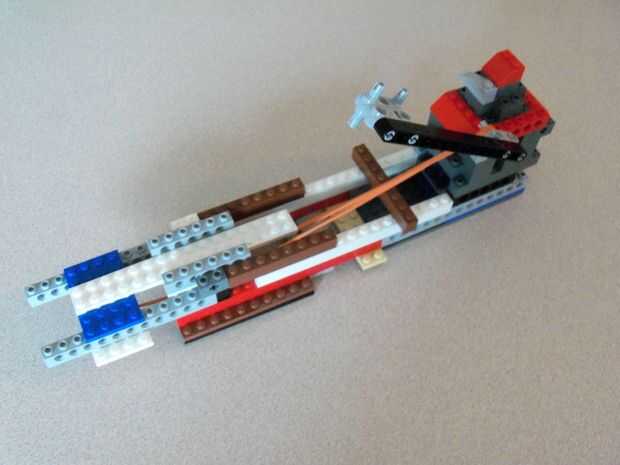 esto muestra cómo hacer una catapulta aseada. Es divertido para construir/jugar con en un día lluvioso o aburrido. Si quieres un juego para jugar lanzamiento malvaviscos en boca de alguien. Lo siento solo tengo una foto. Mi hermana (ella tiene la cám