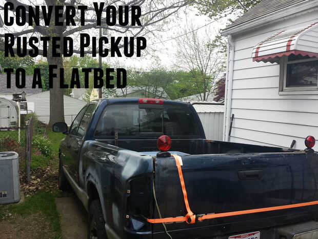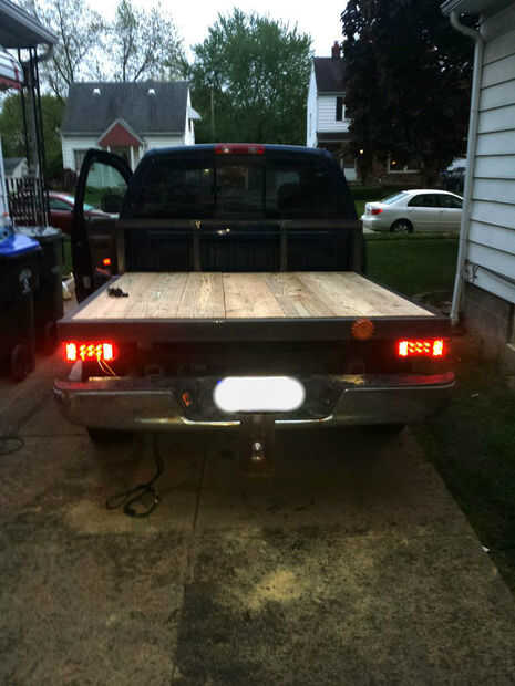 Dodge1500 mi tenía una cama oxidada así que decidí que era tiempo para reemplazarlo. En la búsqueda de un reemplazo encontré que sería más barato y más fácil de convertir mi carro a una cama plana simple. He añadido luces temporales por lo que podría seguir conducir el camión durante la conversión.