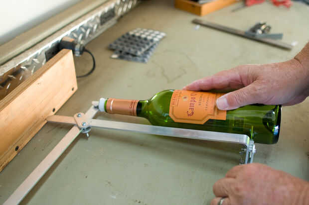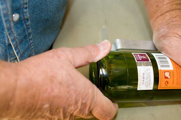 Utilizando el gizmo de corte botella favorita, anotar una botella de vino 1-2 pulgadas de la parte inferior. Círculo una sola vez la botella para evitar que varias líneas de puntuación.