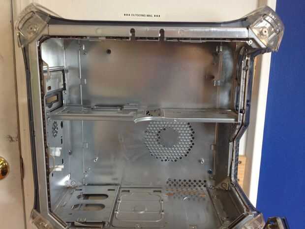 Desenroscar, arrancar, rasgar hacia fuera, apalancar o martillo a todos los componentes dentro de la torre del ordenador. Se recomienda dejar la carcasa externa de plástico ya que añade color, protección extra y elimina los filos dentados o el cartero al encuentro