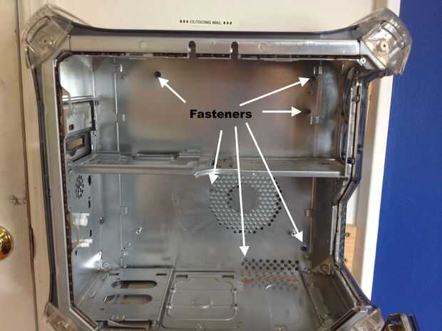 Hay un montón de orificios ya no perforados en la shell de torre de ordenador necesidad de perforar agujeros. Simplemente conecte sus sujetadores en la pared a través de estos agujeros.