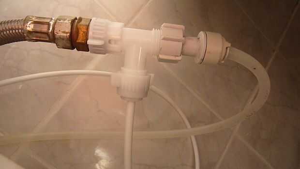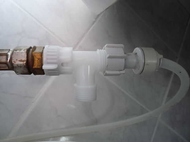Mi instalación de agua fría fue fácil porque tenía un conector en el grifo para mi filtro de agua. Sin embargo la tubería caliente fue cabida como se explica aquí.