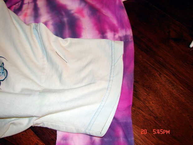 Ahora simplemente coloque la camisa con capucha, manga pone plano y se puede ver claramente el patrón de la campana que falta desde el centro.