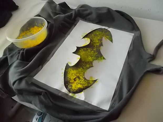 Coge tu logo y pega lo con un poco de cinta, luego espolvorea el lápiz rallado.