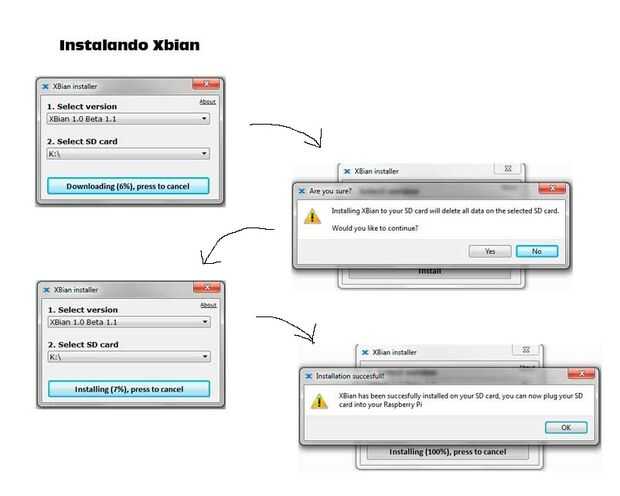 En un ordenador donde podamos leer la tarjeta SD, 3.ejecutamos el programa de instalacion de Xbian. Al arrancarlo nos ofrecera instalar las diferentes versiones de Xbian disponibles (ahora mismo la 1.0 y la 1.1). Elegimos la mas de versión alta (Beta, no alfa) y debajo elegimos la unidad del sistema donde se encuentra la tarjeta SD