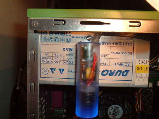 esto es un LED basado en la luz del acuario. Consiste en una lámina de plexiglás con agujeros perforados en él para acomodar los LEDs hacia abajo en el tanque. El circuito es superior el plexi y será impermeabilizado con pegamento de silicona calient