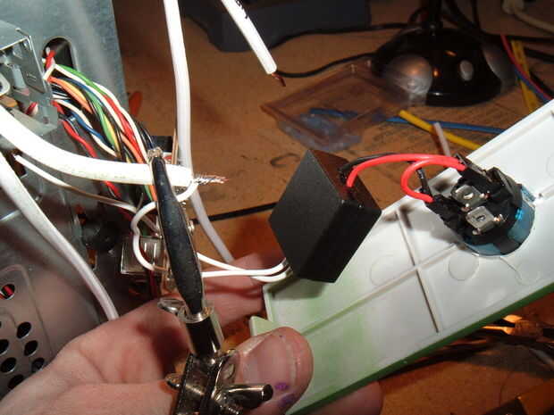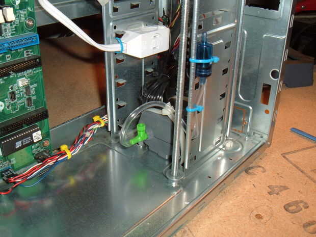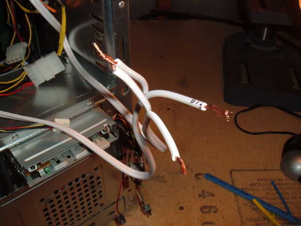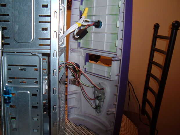Corrí una pierna del cable de alimentación a través de un interruptor luminoso montado en una placa en blanco debajo de la medida de CD ROM. el centro de la placa en blanco, orificio en proporción con el diámetro del interruptor de su uso. Asegure el interruptor y referencia el diagrama de cableado y cuadros para el gancho hacia arriba.