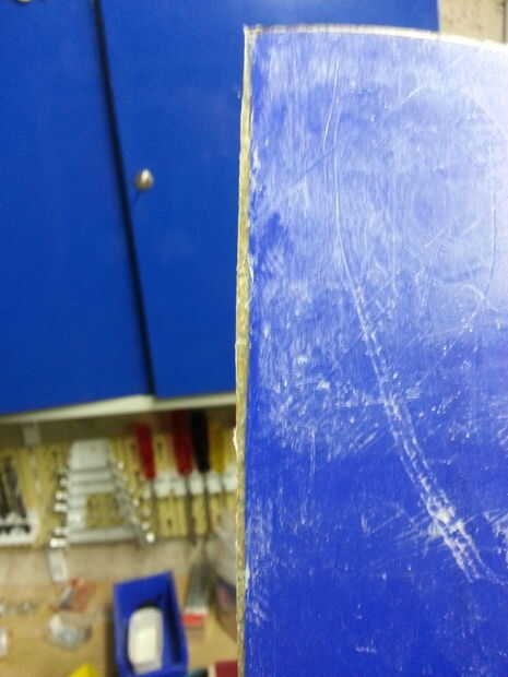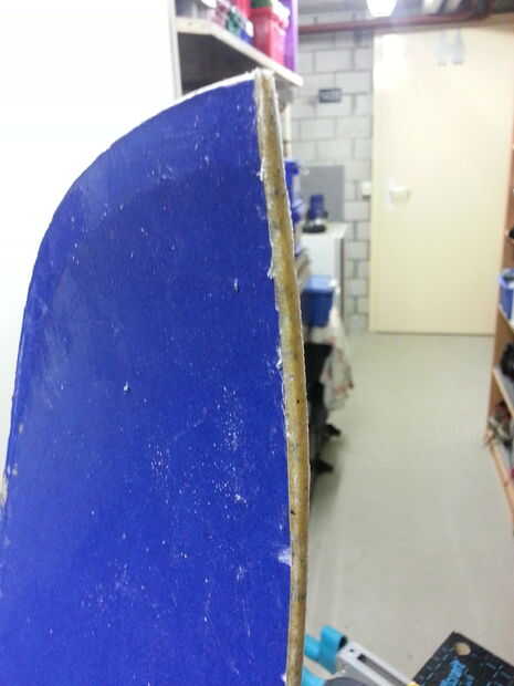 Para hacer esto, mezclé el epoxi con el endurecedor tal como escrito en las instrucciones. Luego empecé a mezclar serrín del tablero en. Cuando tuve una consistencia que pensé que debería hacer, llené la brecha entre las mitades del tablero. Antes, me había puesto cinta a un lado del medio y por debajo del tablero y crear de un molde. Después de secar, lija todo hasta el nivel de la Junta.