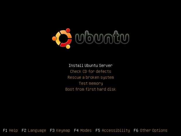 todo lo que necesitas hacer realmente se pone el cd de Ubuntu Server en la unidad óptica y arranque desde el cd en el BIOS. es diferente para todos los equipos pero normalmente puede acceder a la BIOS de la primera pantalla de arranque (aka lo primero que aparece en el monitor una vez que presione el botón de encendido) y presionar F12 o Supr en el teclado