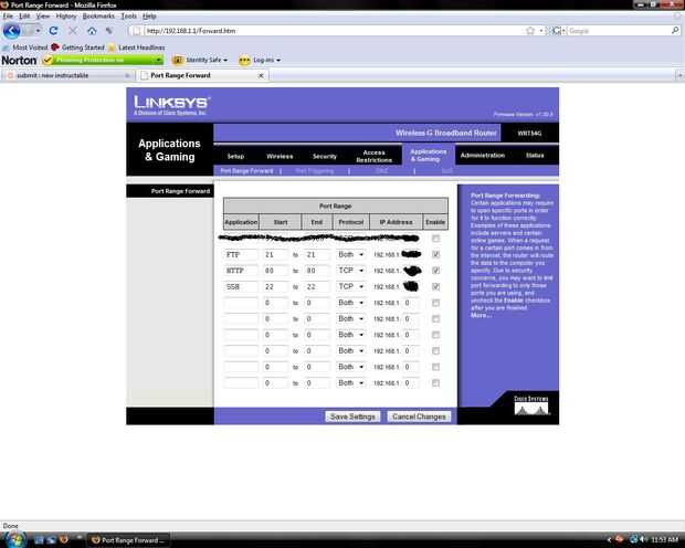 habrá una forma de tabla, introducir el nombre de aplicaciones, el reenvío de puerto en Puerto, el protocolo y luego IP de su servidor. por ejemplo: HTTP 80 80 TCP 192.168.1