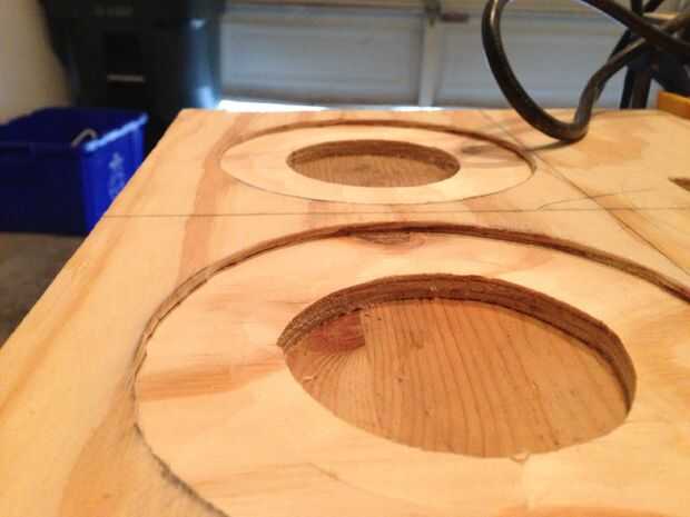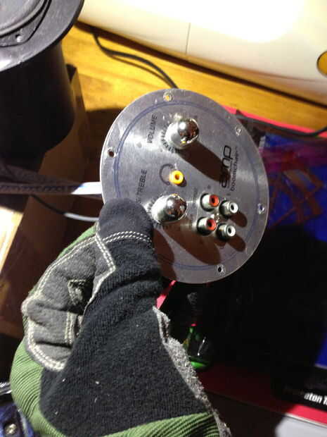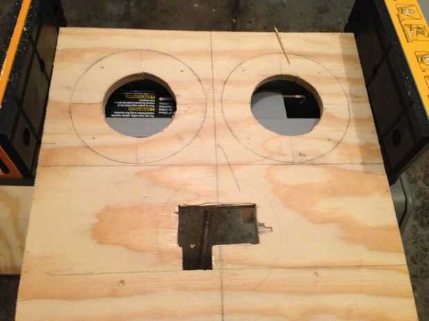 Para el frente que solo preliminar hacia fuera con los dos altavoces y controles por debajo de la media. Puso hacia fuera por mirar más que de división matemática. Usé un taladro y un jig Sierra para cortar los orificios y luego utiliza un router para hacer una hendidura poco profunda para las cubiertas del altavoz para sentarse en. No es necesario, simplemente cosméticos. Dejé los controles al ras con la cuz de unidad me gusta el metal empernada mirada tiene. Los altavoces tenían estas cubiertas plásticas que se extendía hacia atrás unas pulgadas. En lugar de meterse con esto y ruina de los altavoces y porque puede ayudar al sonido de altavoces baratos mejor, dejó ser. Los controles tenían una forma extraña a la electrónica, así que tuve que modificar esto que fui, afeitado aquí y allá para no para forzarlo a través y dañar algo.