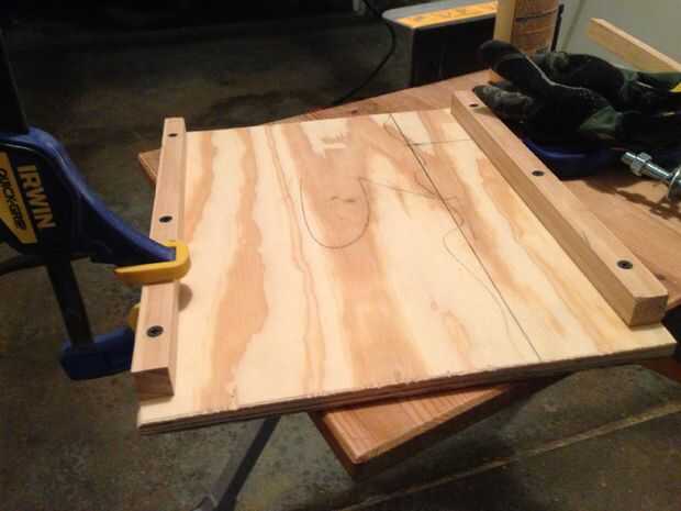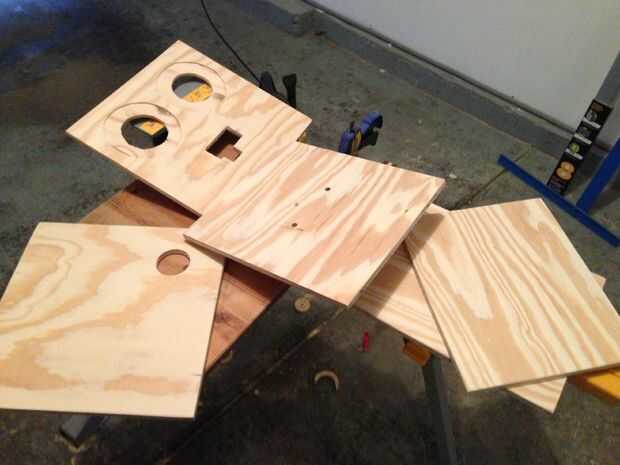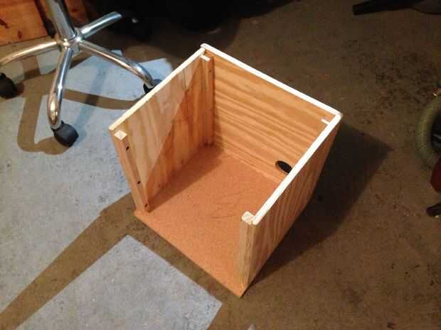 Para los lados y parte inferior eran simples cortes. ¿La parte trasera tiene un agujero que taladró para la banda? (creo que su llamado). hubo un inserto de plástico conectada en el secundario desde el exterior (usted verá pronto). La parte superior tiene dos orificios perforados en ellas unos 4" para montar la abrazadera empalme. También tenían estos desechos finos que cortar una áspera para darme soporte de esquina y tienen algo de aire clavarlas. El fondo es un trozo de aglomerado que tenía. En general las dimensiones de la caja terminaron siendo 13" ancho x 14" de altura x 11 1/2" de profundidad. Otra vez esto era solo preliminar hacia fuera basado en la profundidad del submarino y la electrónica posterior de los controles. Estaban en el mismo nivel por lo que tenían que tener espacio adecuado. Reuní los lados y atrás, dejando la parte delantera y la parte superior hasta que instale los componentes.
