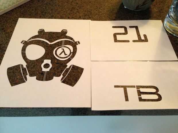 De todos modos, permanecí fiel a esa naturaleza original de la silla con mis colores y además de que no le gusta el rojo y negro. Hice algunas plantillas en Photoshop y fue a ella. La brisa para algunas manchas mientras se seca a la tuvo que hacer algunos retoques con la cinta. Creo que la máscara salió mucho mejor que la parte delantera y el otro, pero verás siguiente. ¿Fans de Half-Life?