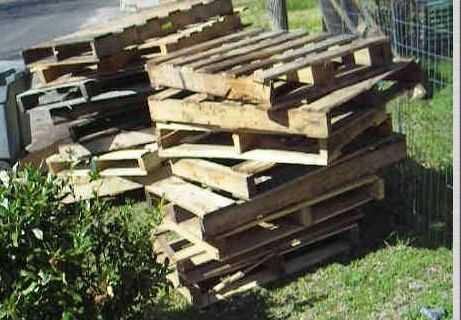 -~ 4 paletas de madera, u otra cosa para crear el 'esqueleto' de su estructura. Éstos están en la basura fuera de grandes supermercados y centros comerciales prácticamente en cualquier lugar. Desea los más viejos, más feas, que usted puede encontrar que todavía son más o menos intacto. Yo plataformas que fueron unos 45 "x 35", pero el tamaño es flexible. A hacer su proyecto más fácil tener 4 palets del mismo tamaño (la 5 solo se rasga aparte para madera).