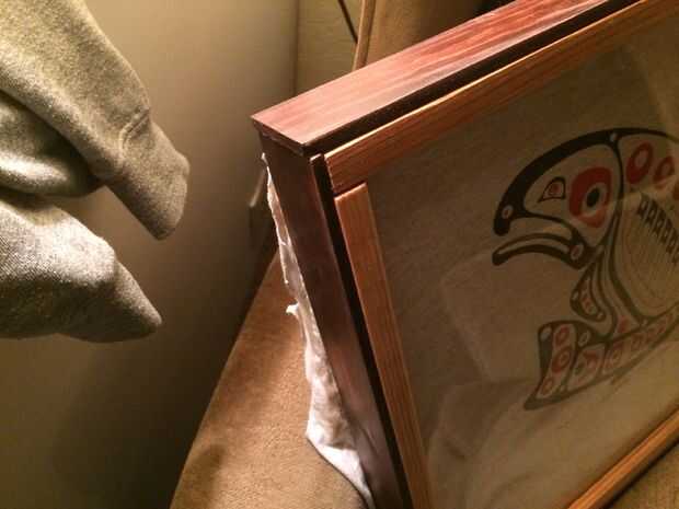 Con la última parte del cuadro pegado en su lugar, estoy dispuesto a hacerlo. Como se puede ver en el primer plano, estoy usando empalmes de tope para las piezas del marco. No tengo una mitra y configurar, pero creo que esto añade un carácter rústico hermoso. Algunas de las juntas eran un poco cortas también, pero voy a aceptar esto como parte de la pieza.