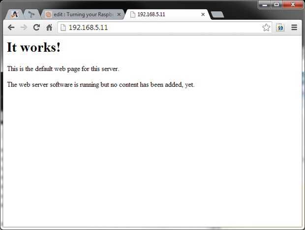 Ahora vaya a su navegador de preferencia y escriba la dirección IP de la Raspberry Pi en la barra de URL. (si no puede recordar la dirección IP, utilice el comando ifconfig desde antes en este tutorial.