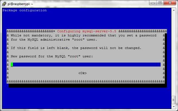 Durante la instalación, se le pedirá para definir una nueva contraseña para el usuario root de MySQL. Escriba una contraseña de su elección, confirme la contraseña otra vez para continuar la instalación.