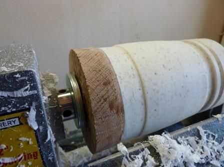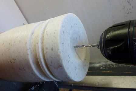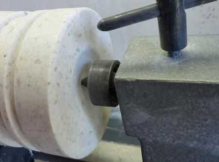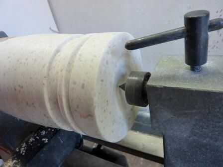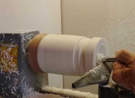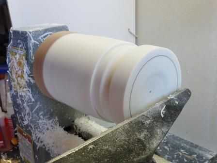Tras perforar otro agujero en el extremo del espacio en blanco, era entonces capaz de cambiar completamente todo el espacio en blanco. Entonces fui capaz de quitar el cabezal móvil y empezar a cortar la parte inferior de la tapa.